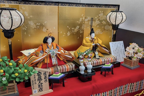 京都信用金庫 丸太町支店のロビーに、桂甫作 黄櫨染親王飾りを展示